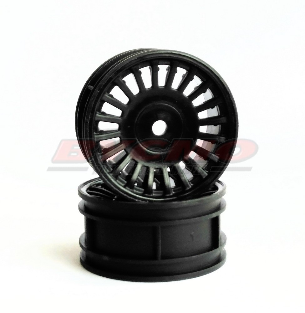 Pack compuesto por un juego completo de cuatro ruedas con neumático todoterreno, interior y llanta para coche de radiocontrol térmico escala 1/10.