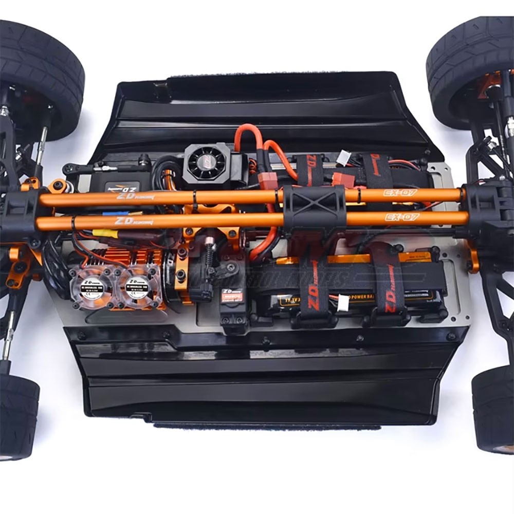 El ZD Racing EX-07 1/7 4WD Brushless RTR es un modelo diseñado para entusiastas del automodelismo que buscan emociones fuertes en pista. Su motor brushless 4282 de 1900KV, combinado con un ESC de 150A, permite alcanzar velocidades de hasta 130 km/h, ofreciendo una experiencia de conducción inigualable.