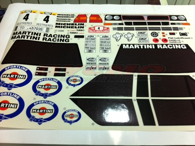 Conjunto carrocería Lancia Delta transparente con alerón, retrovisores y adhesivos incluidos para modelos de escala 1/7.