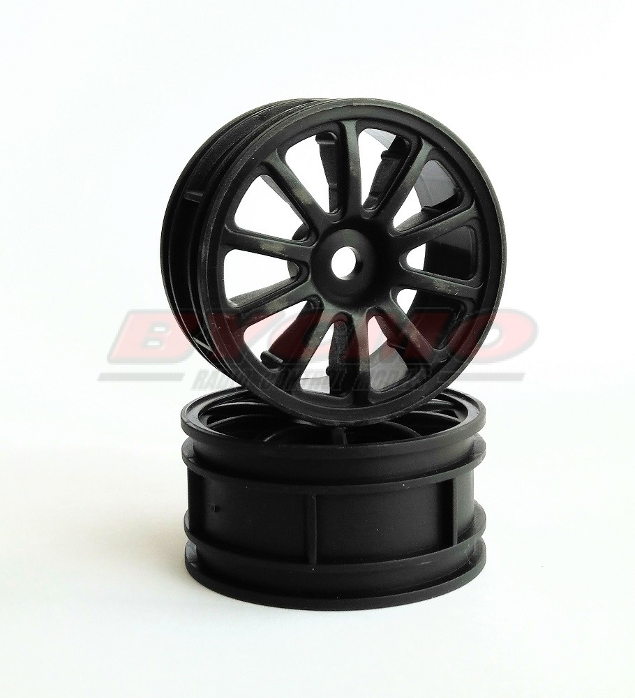 Llanta 10 palos 1/10 negra hex-12 para coches de radiocontrol térmicos escala 1/10 (4Ud.)